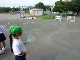 使うものによって、細かいシャボン玉や大きいシャボン玉ができ、子どもたちはとても楽しそうでした。