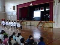 調理員さんにも出席していただき、全校で調理員さんへ感謝の気持ちを伝えました。