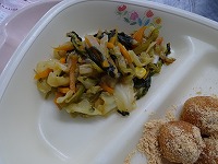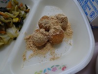 今日は十五夜のお月見団子にちなみ、白玉団子にきな粉と砂糖、塩をまぶした【白玉団子の黄粉和え】を出しました。