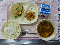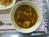今日の【小江戸カレー】は、じゃが芋の代わりにさつま芋が入ったカレーです。
