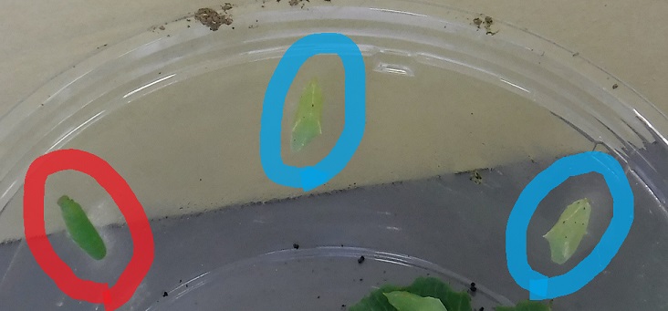 上柴東小学校で見られるさなぎはどれも黄緑色ですが、