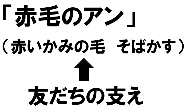 物語の中に赤毛やそばかすをからかわれて、アンがつらい思いをする場面があります。そんなつらいことをアンは明るく乗り越え、成長していきます。しかし、アンは一人で乗り越えたわけではありません。親友のダイアナや友達が支えてくれたのです。 一緒に悪口仲間になるか、悪口を言われた友達を守ってあげるか、どちらの立場が正しいか分かりますね。