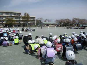 今日から、子供たちだけでの登下校が本格的にスタートしました。一斉下校では、担当の先生から「交通事故には十分に気を付けて、一列で帰りましょう」というお話がありました。班長さん・副班長さんは、低学年の子供たちの歩くペースに合わせながら、安全に下校させていました。とても頼もしい高学年の子供たちです。明日からも安全に気を付けて登下校しましょう。