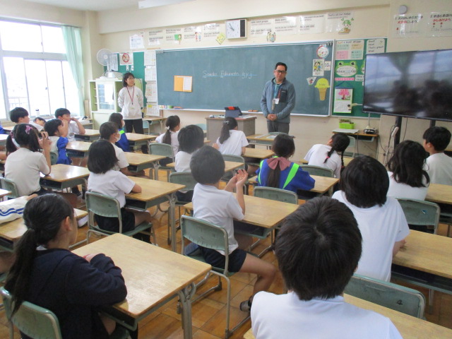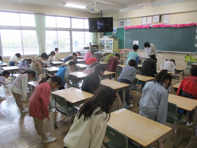 始業式では、校長先生のお話のとき、どの学年も元気に返事ができました。