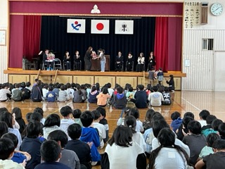 明日は、3月に本校を去られた先生方が、お別れのあいさつに来てくれる日です。お手紙やお花を渡す代表児童が、体育館でリハーサルをしていました。お会いできるのは嬉しい反面、これが最後になってしまうかもしれないと考えると、とてもさみしいですね。お世話になった気持ちを、言葉や歌声でしっかり伝えましょう。
