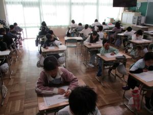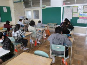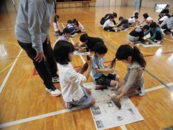 4年生マット運動です。「めざせ側方倒立回転への道!」、スモールステップで段階を踏みながら、側方倒立回転につながる技を練習していました。友達とペアになって、お互いに声がけしながら、真剣に頑張っていました。返事やあいさつも元気がよく、動きも素早い4年生でした!
