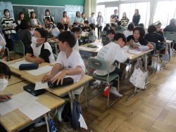 他校の児童生徒とやりとりをしている。