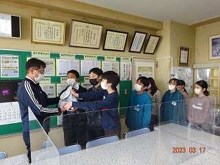 消防署では救急車の出動の緊迫した雰囲気を感じたり、消防車の道具などを見たりしました。