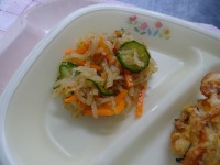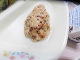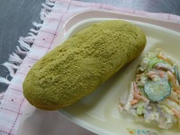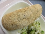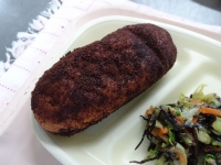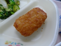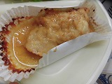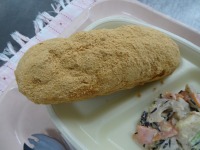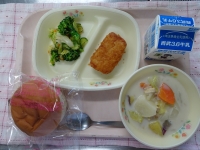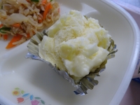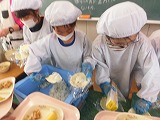 給食では、生地の中にさつまいもとチーズを入れてカルシウムがとれるようにしました。
