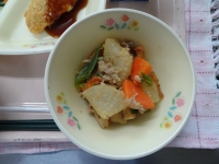 今日の給食は事八日を1日過ぎてしまいましたが、全校で食べてみんなの健やかな成長を祈りました。