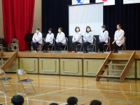 調理員さんにも出席していただき、全校で調理員さんへ感謝の気持ちを伝えました。
