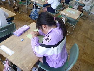 今日は、運動会のめあてを考えて、カードに記入しました。