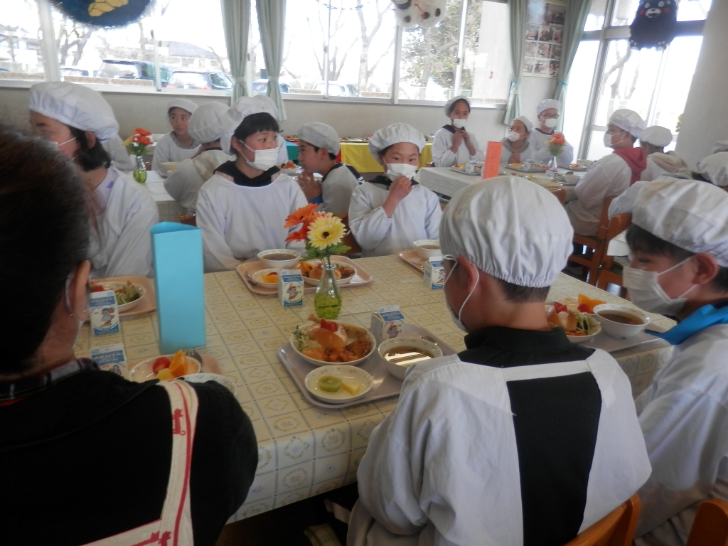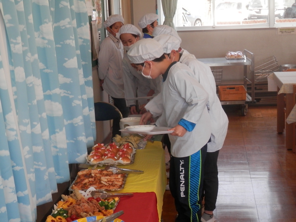 今日は、6年3組のバイキング給食でした。子供達にとっては、小学校生活最後のバイキング給食でとても楽しいひとときでした。司会の6年生も上手に進行できました。途中質問しました。「小学校生活で一番楽しかった思い出は。」「修学旅行。」「社会科見学。」とのことでした。