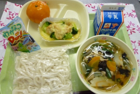 牛乳 肉うどん ブロッコリーのマヨネーズ焼き
