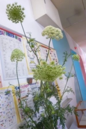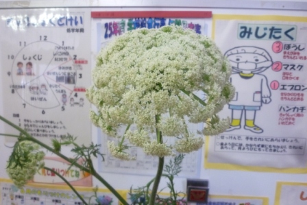 にんじんの花を給食室前に展示しました。
