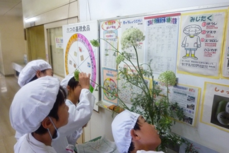 給食室前に展示しました。