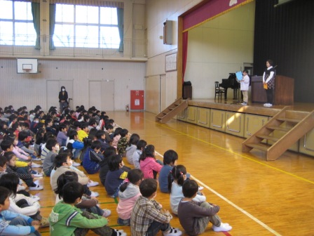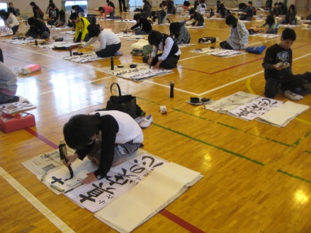 心配された新型インフルエンザの影響も少なく、3学期の始業式を迎えることができました。各ご家庭や地域の方々の温かいご配慮に感謝いたします。始業式では心と体のスイッチをONにするには「腰骨を立てる」ことを話しました。児童代表からは3学期の目標の発表がありました。書き初め制作会では力強く伸び伸びとした文字が書けました。