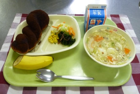 牛乳 ココア揚げパン 海草サラダ ガタタン