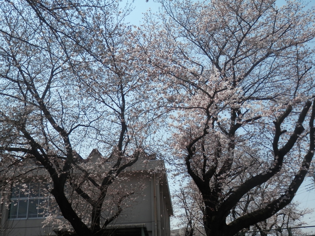 校舎北側の桜が咲き始めています。急にという表現が合っています。子供達の始業式や入学式には、満開になっていると思います。春の日差しを受けどんどんつぼみもふくらんでいます。