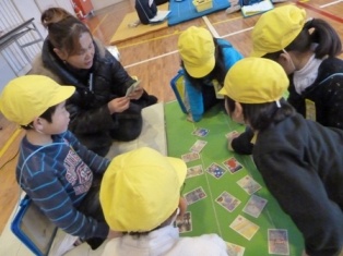 かるたでは、みんな身を乗り出して札が読まれるのを待っていました。