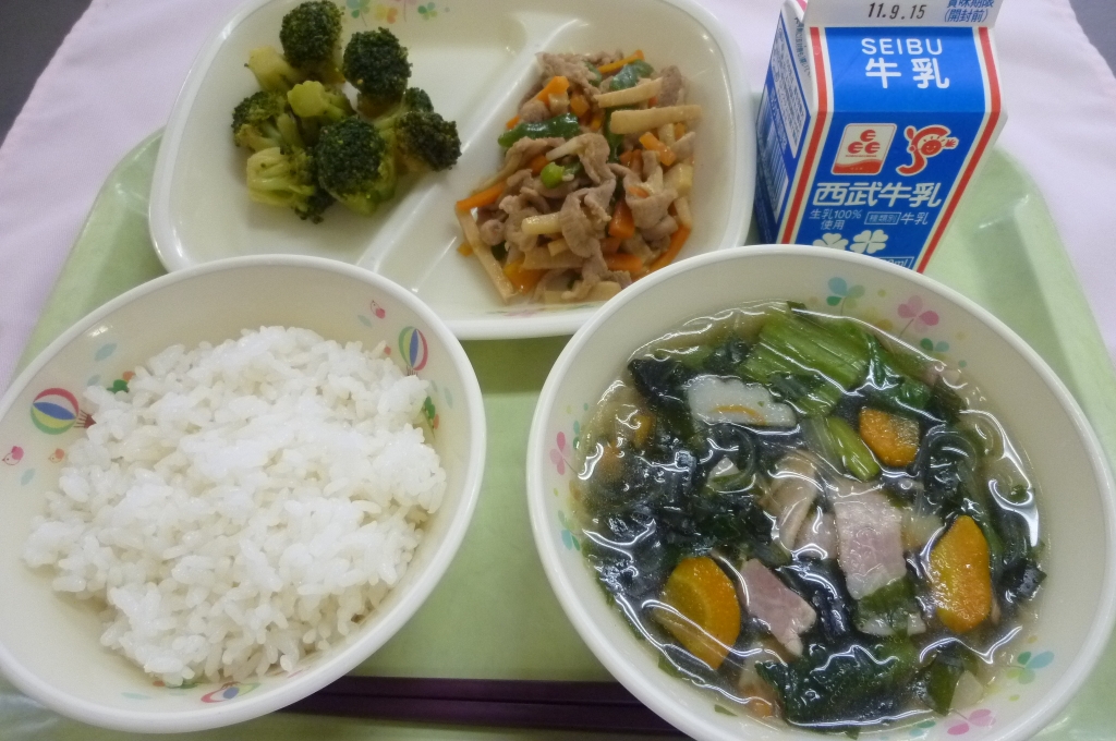 牛乳 ご飯 チンジャオロースー ブロッコリーの