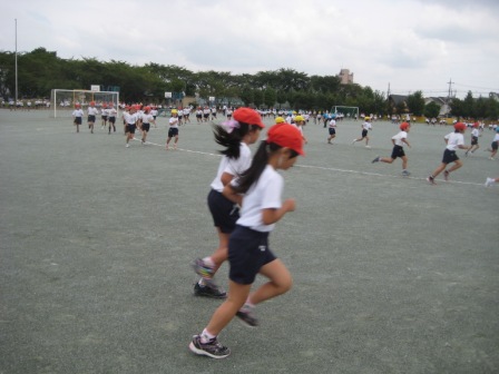 8月から続いた猛暑も陰をひそめました。校庭いっぱいに子ども達が走るさわやか運動を後押ししているかのような気候でした。