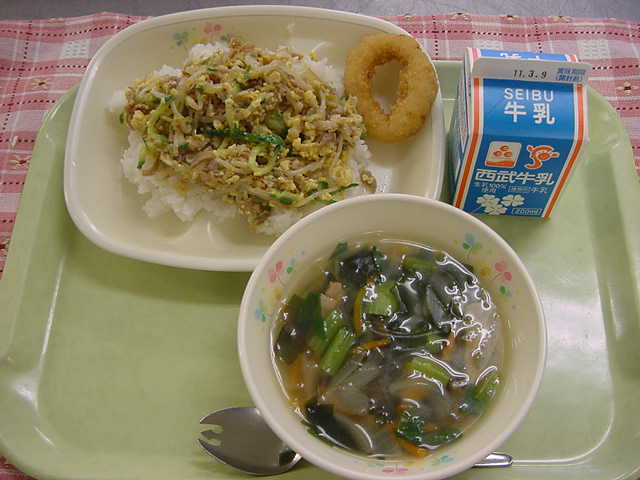 牛乳 ビビンバ イカリングフライ 中華スープ