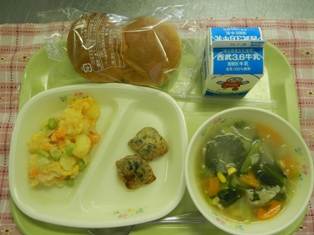 「カラフルポテトのチーズソテー」は、何年か前にあった「コーンとじゃがいもの炒め煮」をアレンジした料理です。じゃがいもやコーンの他に、にんじん、たまねぎ、枝豆などをコンソメ味で煮て、最後にとろけるチーズを加えて作ります。子どもたちにも人気がありました。簡単にできますから、家庭でも作ってみませんか?