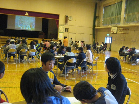 他校の児童生徒とやりとりをしている。