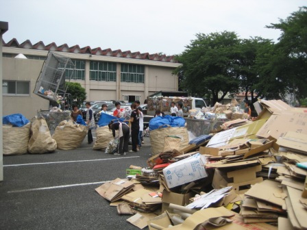 26日、本年度第1回資源回収が行われました。学校の駐車場、コミュニティーセンター駐車場にはPTA役員の方々によって新聞紙、雑誌、段ボール、アルミ缶がたくさん集められました。ご協力いただいた、地域の皆様、PTA会員の皆様に感謝申し上げます。