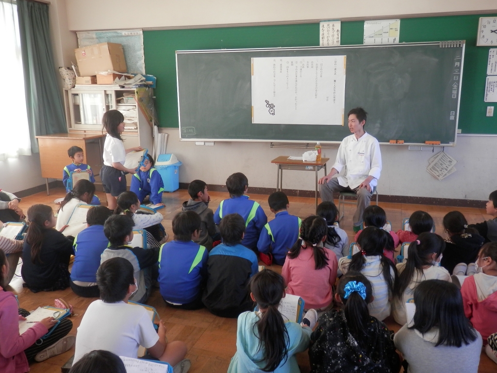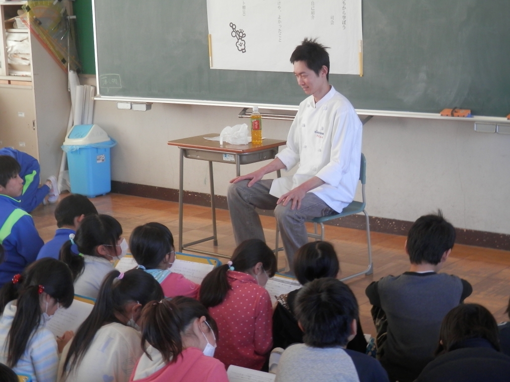 今日は、4年生の1/2成人式のためにパティシエの佐藤先生にお話を伺いました。子供たちは、ケーキづくりのことやその他の洋菓子づくりのことなどを興味深く聞いていました。技術を身につけるには、修行が必要だと感じました。ありがとうございました。
