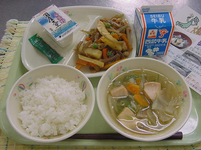 牛乳 ご飯 じゃがいものキンピラ煮 冷奴
