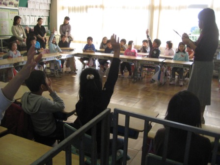 なお、保育園・幼稚園・学童保育・小学校の連携を図るために、関係者を授業参観にお招きしました。