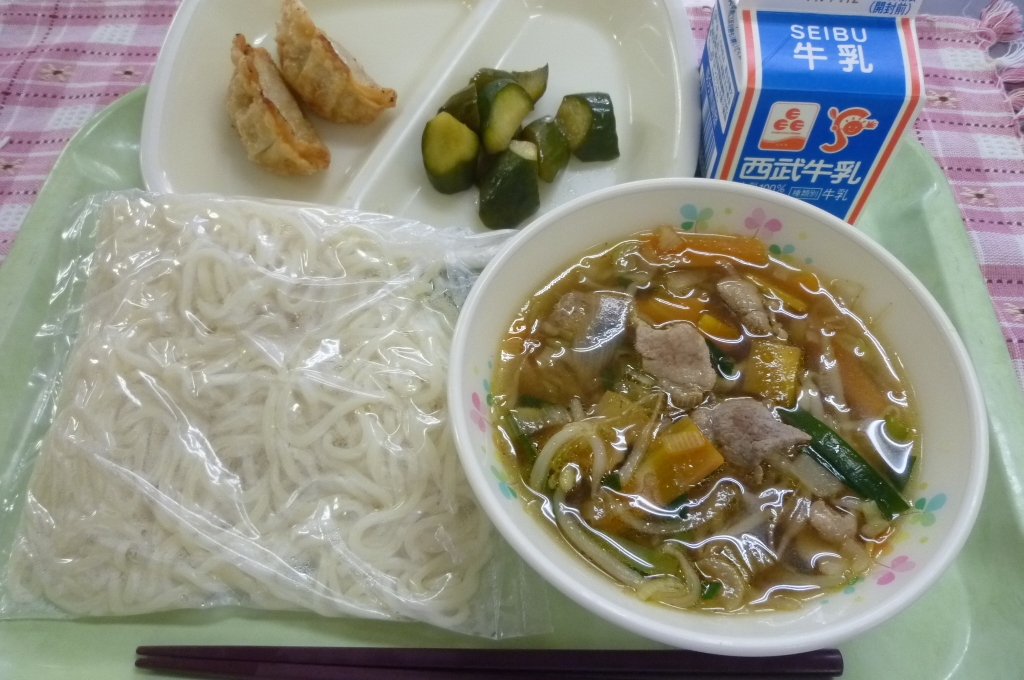 牛乳 醤油ラーメン カリカリ餃子 中華きゅうり