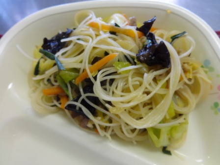焼きビーフンは、野菜炒めの中に茹でたてのビーフンを加え、サッと炒めます。