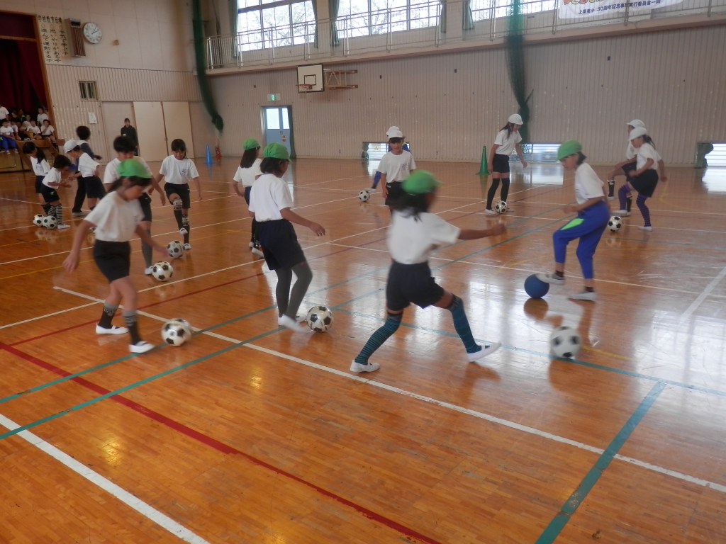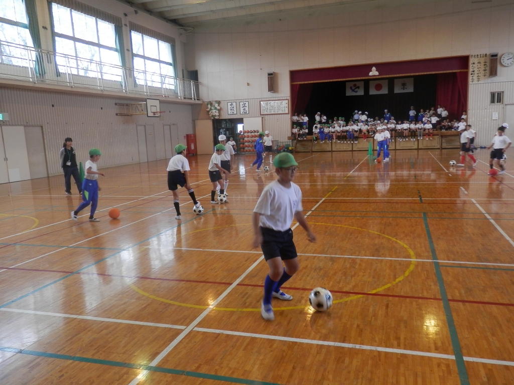 5年生が親善球技大会(サッカー大会)の練習を体育館でしていました。雨のため校庭での練習ができないためです。五頭先生のリードでゲームをしながら基本的な動きをしていました。親善球技大会は、11月1日(水)に上柴西小の5年生と本校の校庭で開催されます。親善を目的としています。お互いのよいところを認めたたえ合いながら試合を進めてほしいと思います。