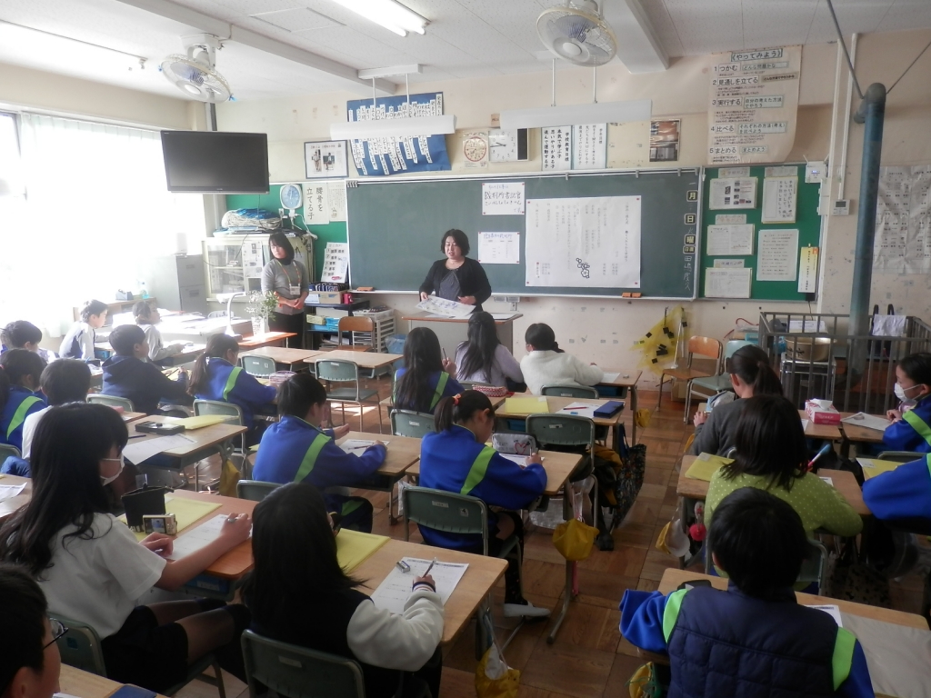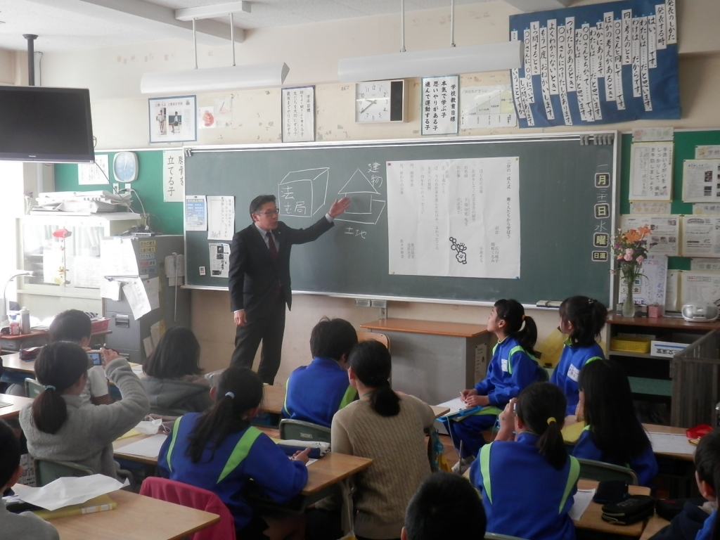 4年生の総合的な学習の時間で1/2成人式をするためにいろいろな職業についてお話を聞く学習をしました。司法書士の下境将寛様や裁判所勤務の平野陽子様にお世話になりました。10歳当時の頃や今の職業をどうして目指そうとしたのかなどお話を伺うことができました。しっかり学習ができました。