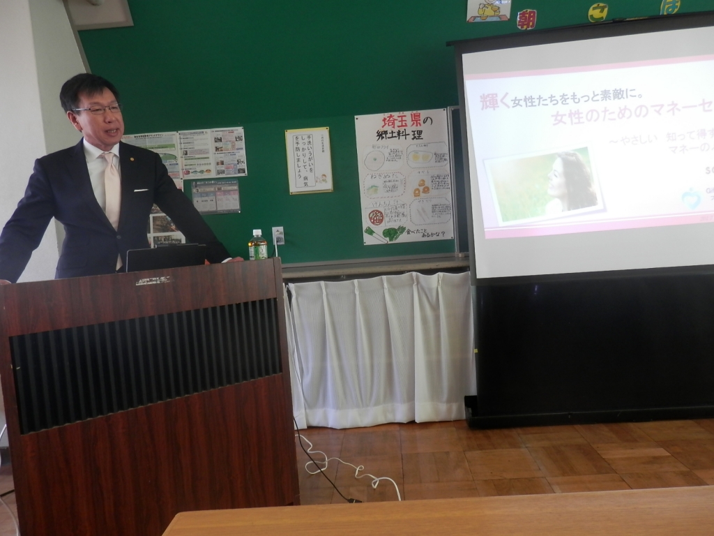 19日(金)の10時から会議室においてPTA成人教育講座が開かれました。講師は、ファイナルプランニング技能士の菅沼修先生です。テーマは、「輝く女性たちをもっと素敵に。女性のためのマネーセミナー」です。これからの夢を叶えるためにどうしたらよいか。どのくらい貯蓄があるといいか。などていねいにお話いただきました。人生には突然のハプニングがありますが、このことを考えての夢の計画が大切だと菅沼先生から教えていただきました。ありがとうございました。