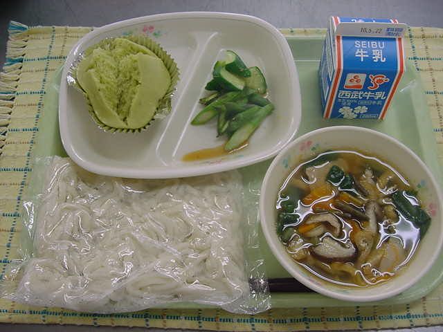 牛乳 山菜うどん 抹茶蒸しパン
