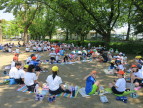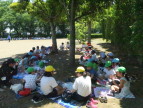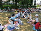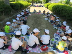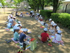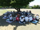 外で食べる給食はおいしいです!
