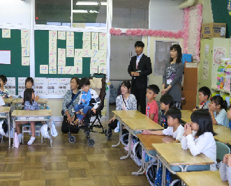 今日は支援籍学習があり、熊谷特別支援学校から諸田圭祐さんが来校し、1年1組のお友達と一緒に勉強をしました。自己紹介や校歌の発表、運動会のダンスの発表などで楽しく過ごしました。圭祐さんも1組のみんなも笑顔いっぱいで、あっという間の1時間でした。