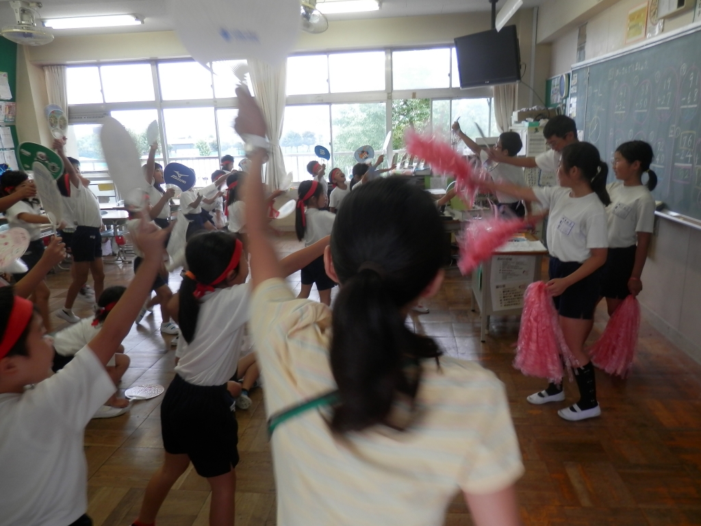 赤組・黄組・青組の応援練習も盛んに行われています。
