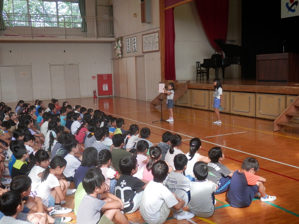 29日(火)2学期の始業式を行いました。代表児童2人が2学期に頑張りたいことを発表していました。転入の児童も4人いました。早く上柴東小に慣れてほしいと思いました。そして仲良く過ごしましょう。新しく松本慎也先生も9月1日からお勤めいただきます。また、多くの子供たちは、元気に登校してきました。夏休みの宿題をたくさんもってきていました。登下校の見守りの皆様方、よろしくお願いいたします。