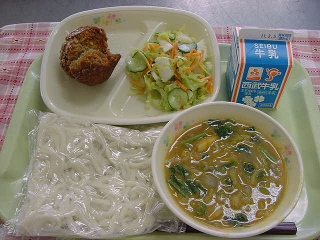 牛乳 カレーうどん サーターアンダギー いかのマリネ