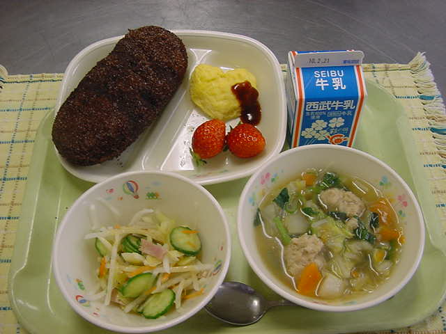 牛乳 ココア揚げパン(チョコレート味) ハートのオムレツ