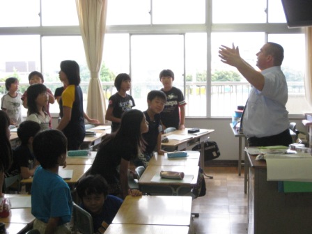 深谷市教育委員会では、市内29の小中学校が英語教育の研究開発学校として研究をすすめています。本校でも3~6年生で週1時間、ALTの先生とともに授業を行っています。