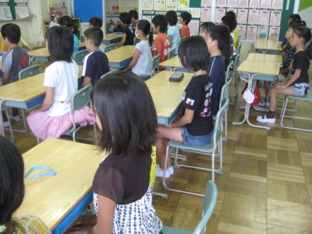 各学級とも2学期の順調なスタートをしています。写真は、4年生の朝の会での「腰骨タイム」の様子です。子ども達は落ち着いた気持ちで、先生の話しを聞いていました。