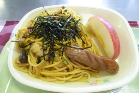 醤油味の和風パスタです。さっぱりしとして、飽きのこない味です。