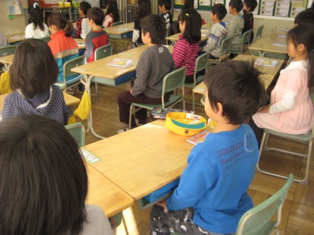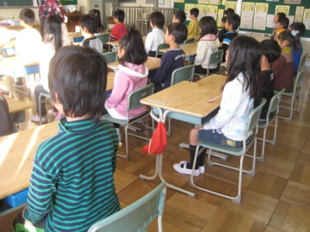 3学期が始まった今週、1年生の朝の会を訪問しました。どのクラスも全員出席し、元気のよい返事ときちんとした手の揚げ方ができていました。腰骨の立て方も身につき、話しを集中して聞くことができました。