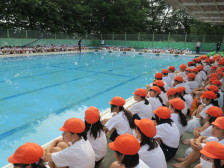 お天気に恵まれ、夏を感じさせる日差しの中、今年度のプール開きをしました。校長から「安全第一!」「卒業までに25m泳げるようになろう!」という話を、体育担当からは「水は楽しい 水は友だち 水はこわい」という話をしました。